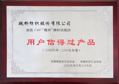 • 魏橋紡織的針織用紗榮獲中國棉紡織行業協會及中國針織工業協會 用戶信得過產品稱號