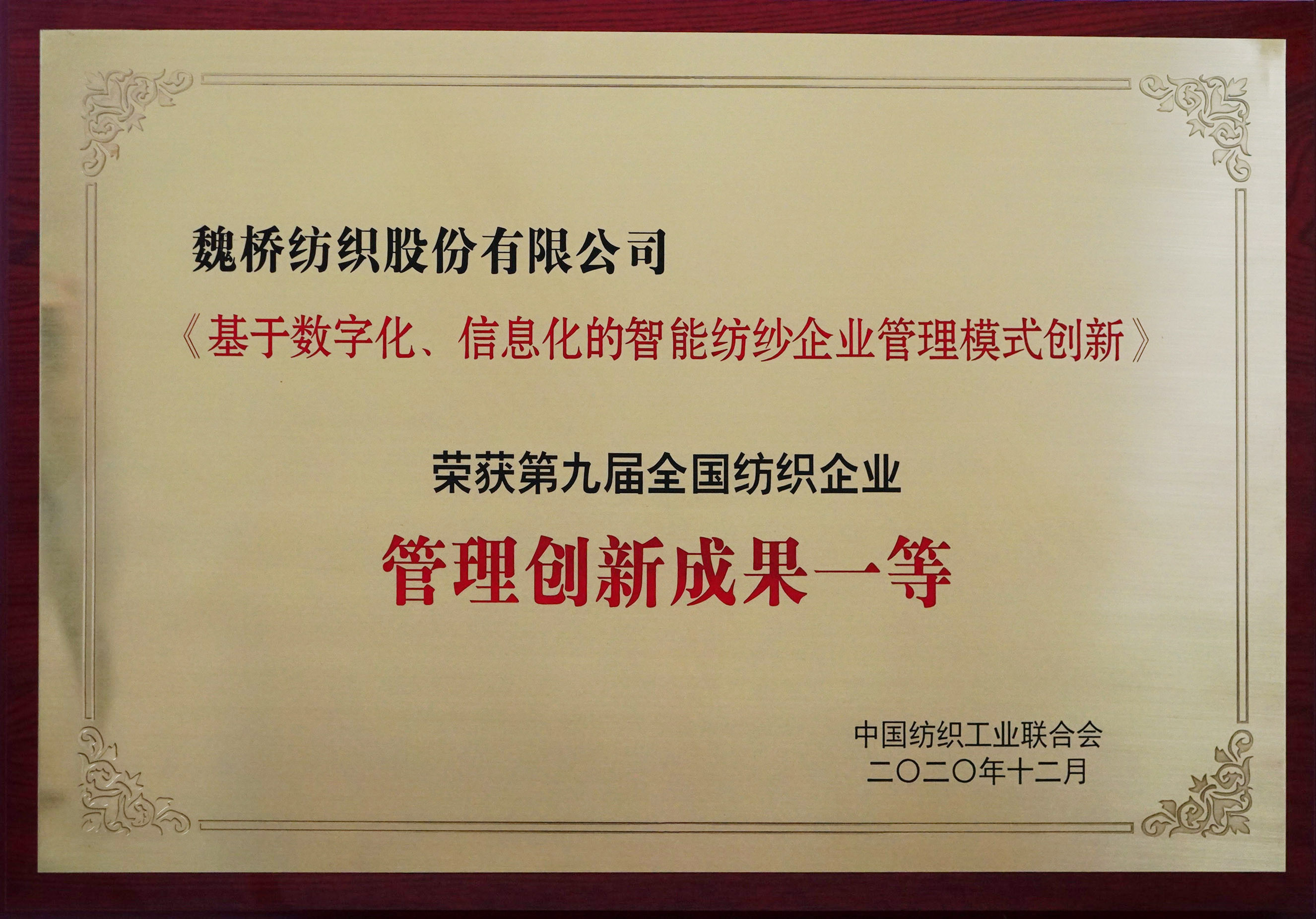 第九屆全國紡織企業管理創新成果一等